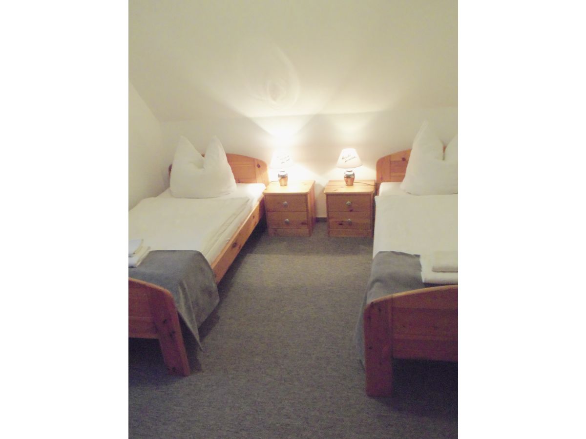 - Schlafzimmer (12 m² im 1. Stock) mit Bettwäsche, Kleiderschrank, 2 Einzelbetten (90x200)