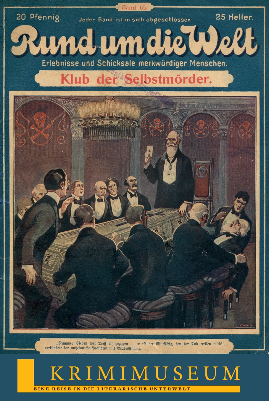 Das Krimimuseum ist ein Literaturmuseum, das die Geschichte und Entwicklung der Kriminalliteratur vom frühen 18. Jahrhundert bis 1945 nachzeichnet und erfahrbar macht. Darüber hinaus besteht die Möglichkeit, interessante und vielseitige Informationen über das Leben der Autoren und die eigenwilligen Vertriebswege der Verlage zu erfahren.Auch Themenkomplexe wie Gebrauchsgraphik und der frühe Film werden anhand zahlreicher Exponate dargestellt und in Beziehung zur Kunst- und Kulturgeschichte gesetzt. Die Sammlung umfasst ca. 9000 Exponate, darin enthalten sind Primär- und Sekundärliteratur, Filmplakate, Verlagswerbung und Autographen.Das Krimimuseum bietet zudem Lesungen für Kinder, Jugendliche und Erwachsene an.