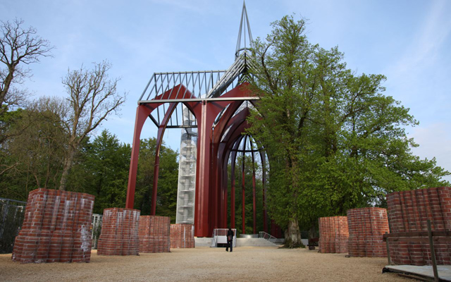 Über eine Wendeltreppe aus Stahl gelangen Sie auf den Aussichtsturm der Klosterstätte Ihlow.