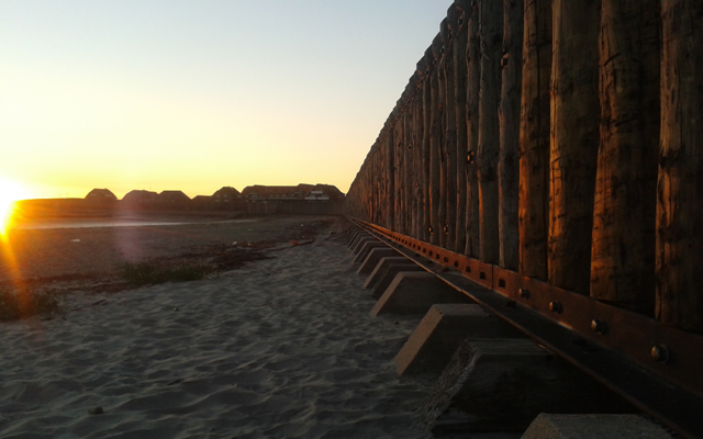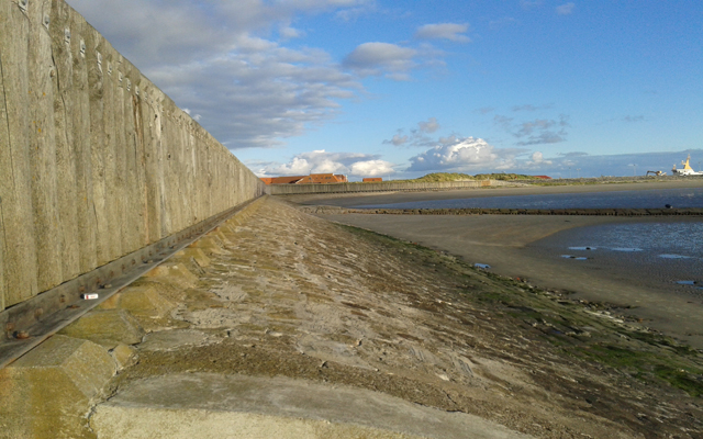 Das Pfahlschutzwerk beginnt direkt Hafen.