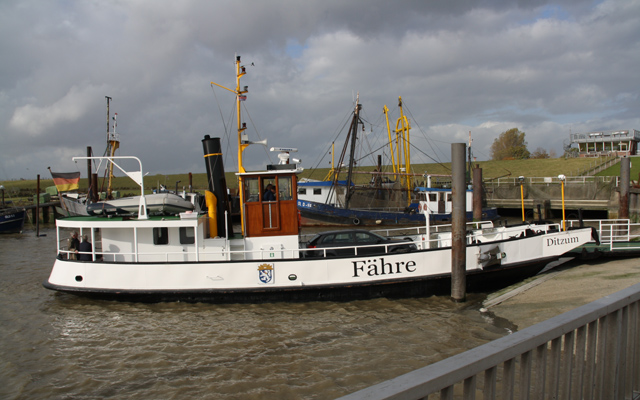Überfahrt vom Petkumer Hafen mit einer kleinen Fähre in das urige Fischerdorf Ditzum.