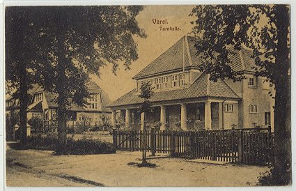 Zur treibenden Kraft zum Sammeln von Spenden für den Bau einer Turnhalle wurde der ab 1911 amtierende Sprecher des VTB, Gerhard Deharde. Der Beschluss zum Bau einer Halle auf dem 1908 gekauften Gelände wurde am 21.05.1913 gefällt. Im März 1914 wurde die nun errichtete Halle eingeweiht, die Baukosten beliefen sich auf 29.000 Mark. Diese Rechnung wurde von 4 Hypotheken über 3000 Mark, eine Hypothek über 4000 Mark, Spenden und Zeichnungen von Anteilsscheinen beglichen.Der Vareler Turnerbund wurde 1861 gegründet, durch eine Anzeige im Gemeinnützigen am 13.04.1861 mit dem Titel ''Frisch - Frei - Fröhlich- Fromm'', kam es am 12. Mai 1861 zur einer Versammlung von Vareler Bürgern. Diese beschlossen für den Abend des 31.05.1861 eine Gründungsversammlung abzuhalten. So wurde der Vareler Turnbund offiziell am 31.05.1861 von 30 jungen Männern gegründet.