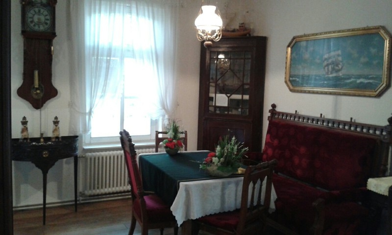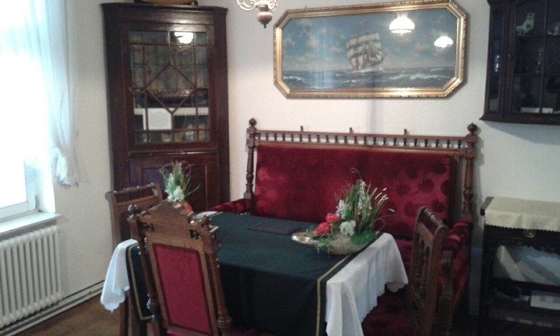 Das liebevoll im Stile eines ostfriesischen Wohnzimmers hergerichtete Zimmer beinhaltet ein rotes Samtsofa und alte ostfriesische Holzmöbel. In der „guten Stube“ werden sonst auch original ostfriesische Teezeremonien durchgeführt.