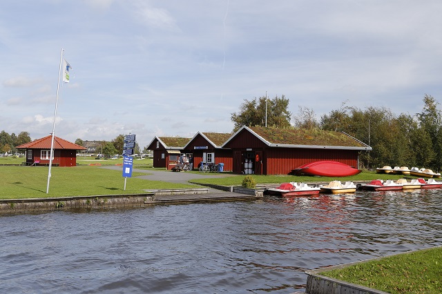 von Emden Hbf/ZOB mit Bus 4, Richtung "Zum Uphuser Meer" bis Haltestelle "Nordertorstraße", von hier Rest ca. 200m bis zur Paddel-und-Pedalstation Emden