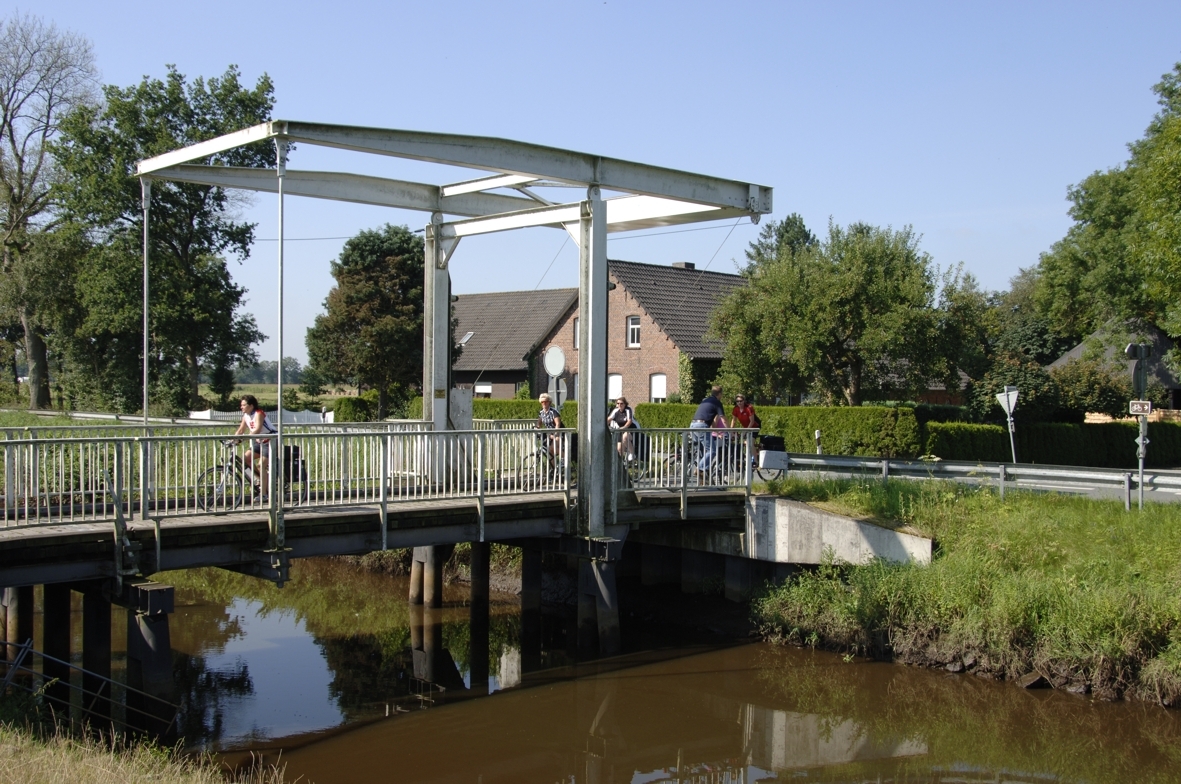 Auf der Landkarte sind die Fehnkanäle oftmals nur als feiner, blauer Strich zu erkennen. Auf der Fahrt durch die Gemeinde Uplengen ist der Nordgeorgsfehnkanal dem Radwanderer jedoch auf fast 30 Kilometer Länge ein steter Wegbegleiter. Noch um die Jahrhundertwende war dieser Kanal, der auf seinem langen Weg von Wiesmoor bis Stickhausen den Ems-Jade-Kanal mit dem Jümmefluss verbindet, ein bedeutender Transportweg für Torf, Baustoffe und alle anderen Güter, die in den Moorkolonien benötigt wurden.
