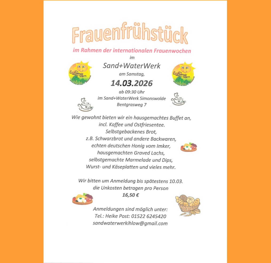 Das Team vom Sand+WaterWerk bietet wie gewohnt ein hausgemachtes Buffet an inklusive Kaffee und Ostriesentee.